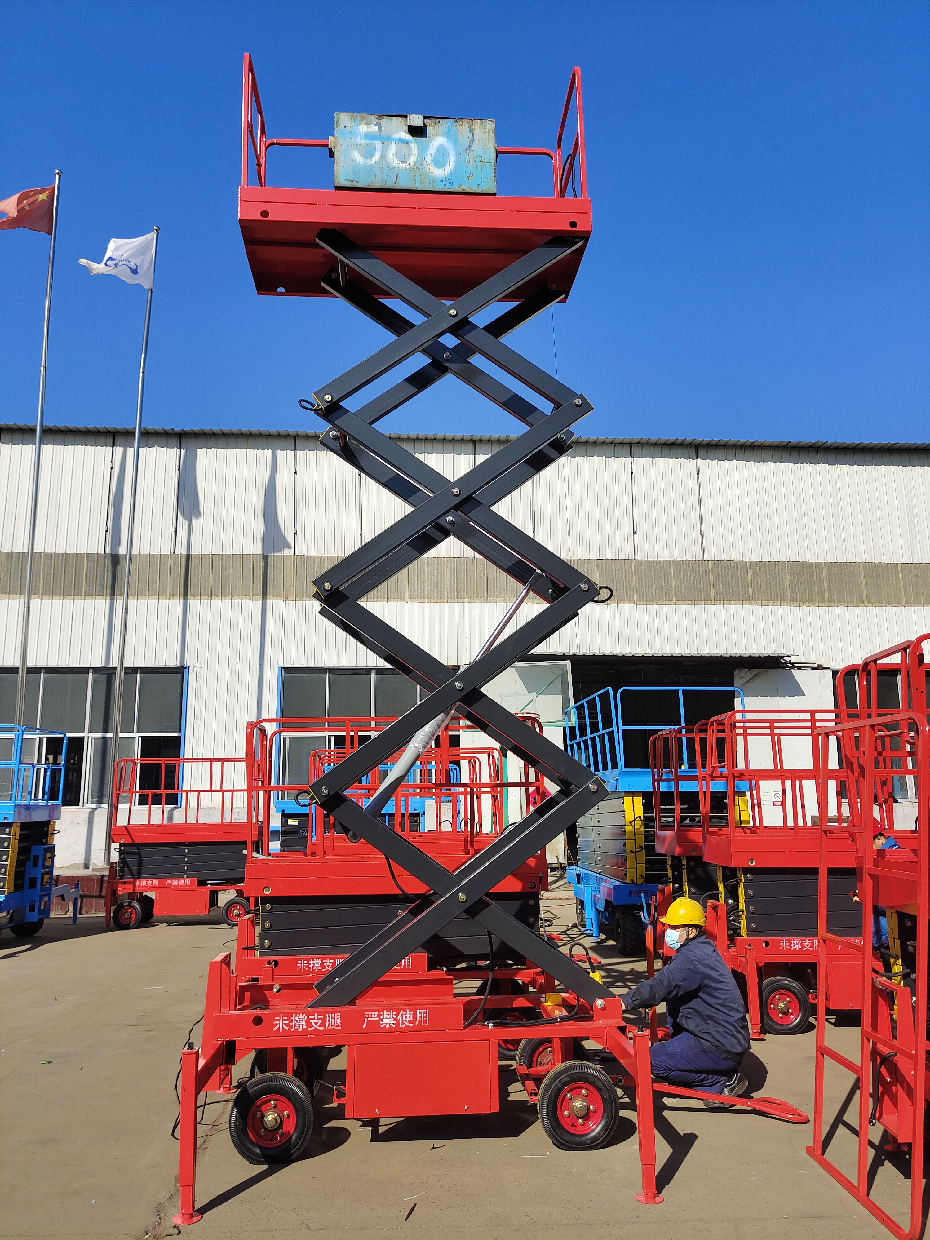 該移動升降平臺是剪叉式升降機的普通版,產品的升降高度從4-18米,載重能力僅提供300Kg,且機身顏色為藍色。適合對升降平臺載重和安全性要求不高的高空作業。該升降平臺同樣采用矩管、液壓油缸、電機作為主要的支撐和上升動力。